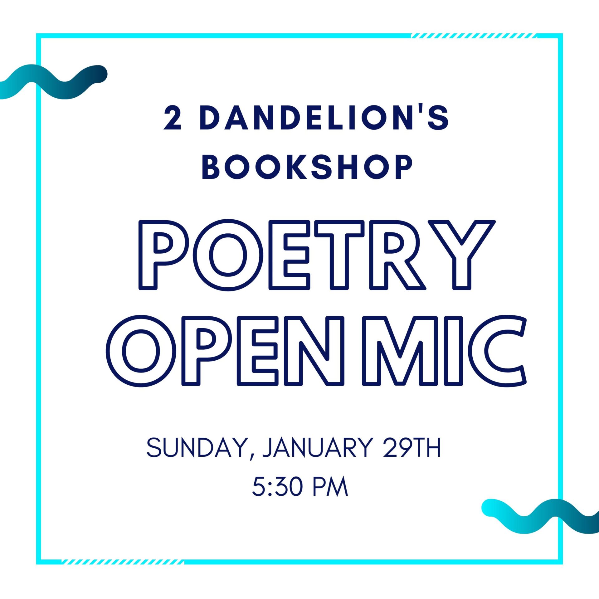 Poetry Open Mic at 2 Dandelion’s Bookstore